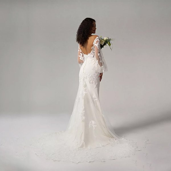Made from sumptuous tulle, the AW Magnolia Wedding Dress exudes a lightness and ethereal quality that is perfect for any wedding theme, from intimate ceremonies to grand celebrations. The fabric drapes elegantly, enhancing the mermaid silhouette and accentuating your natural curves.