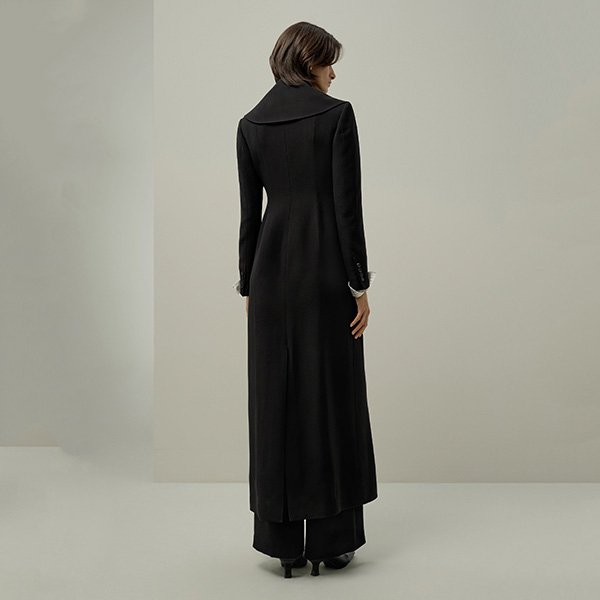 Lightweight & wrinkle resistantLily-petal collar with hidden pockets, structured yet flowing silhouettePremium silk-wool crepe crafted for fluid drape, comfort, and refined outerwear qualitySlimSPU: 71T5296