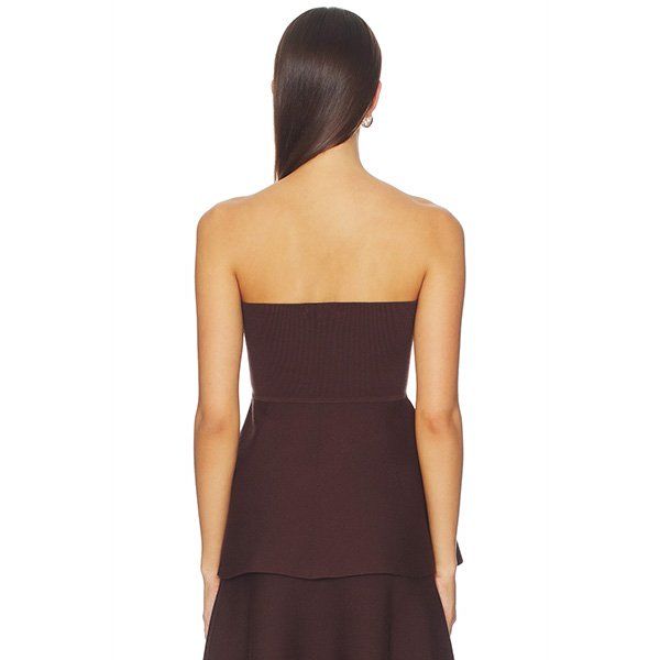 72% viscose, 28% polyester Made in China Dry clean only Pull-on styling Peplum tube top style Ribbed fabric on chest Revolve Style No. LEAX-WS401 Manufacturer Style No. LT5765L-1