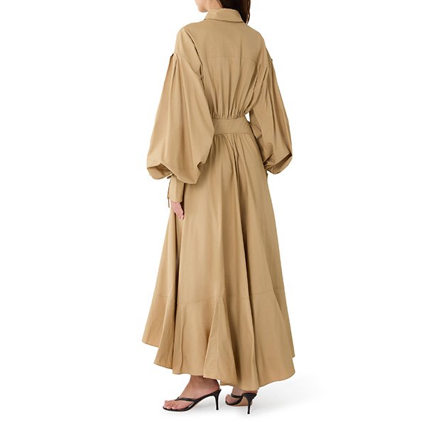 The Zimmermann Rebellion Poplin Midi Dress is a refined expression of effortless elegance and modern femininity. Crafted from crisp cotton poplin, this midi dress offers a structured yet breathable feel, perfect for day-to-evening wear. A wrap waist belt defines the silhouette, while heavy gathering throughout adds volume and graceful movement. Long blouson sleeves bring a soft, romantic touch, balanced by classic buttons running down the centre front. Designed to flatter and flow, this dress blends timeless tailoring with contemporary charm, making it an elevated wardrobe essential for those who appreciate comfort, detail, and understated sophistication.Details & Care Material Composition: Cotton Dry clean only; Remove any detachable trims prior to dry cleaning; Cover to protect trim; Iron in low temperature with protective cloth; Light steam only; Do not spot clean Actual product colour may have slight variation due to photography/lighting